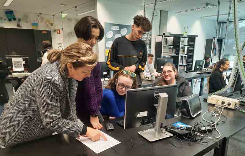 Priestor knižnice spojenej s počítačovou miestnosťou sme využívali pri práci v zmiešaných skupinách napríklad pri tvorbe novinového článku, pri úlohe hľadania potenciálnych riešení klimatických zmien či pri mapovaní najväčších katastrof každej krajiny za posledné dva roky. Kreatívnou aktivitou bola tvorba plagátu a loga na tému zelenej budúcnosti, v ktorej sa študenti prejavili aj výtvarne.