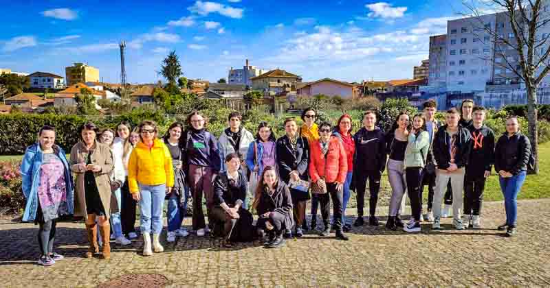 Agrupamento de Escolas de Águas Santas je spojená základná a stredná škola s počtom študentov prekračujúcich 2000, ktorá nás hosťovala po celý týždeň. Spolu s neziskovou organizáciou GeoClube Associação Juvenil, nás privítali spoločne v prvý deň prehliadkou školy. Keďže tragická udalosť silného zemetrasenia zasiahla jednu z krajín našich partnerov – Turecko, študenti pripravili pri vstupe do školy plagáty na vyjadrenie podpory ako gesto súcitu s touto smutnou udalosťou. Každodenný program prebiehal v priestoroch knižnice školy, kde študenti nadviazali mnoho kontaktov aj s miestnymi školákmi. Hneď na úvod mali naši študenti informačnú prezentáciu o Slovensku, Rožňave, gymnáziu, i o našom občianskom združení Druživa a v druhej časti prezentácie sa venovali téme Klimatických zmien odbornejšie. Každá krajina počas týždňa podobne ako my prezentovala svoju krajinu (niektorí dokonca priniesli na ochutnanie aj doma napečené tradičné špeciality), a taktiež mala pripravený blok na odbornú tému. Turecko sa venovalo téme Chemikálií užívaných v bežnom živote a postupom na výrobu prírodných eko-výrobkov, ktoré neničia životné prostredie a rumunskí partneri mapovali tému tzv. Zelených profesií, ku ktorej vytvorili tri videá z rozhovorov s ľuďmi z tejto oblasti.