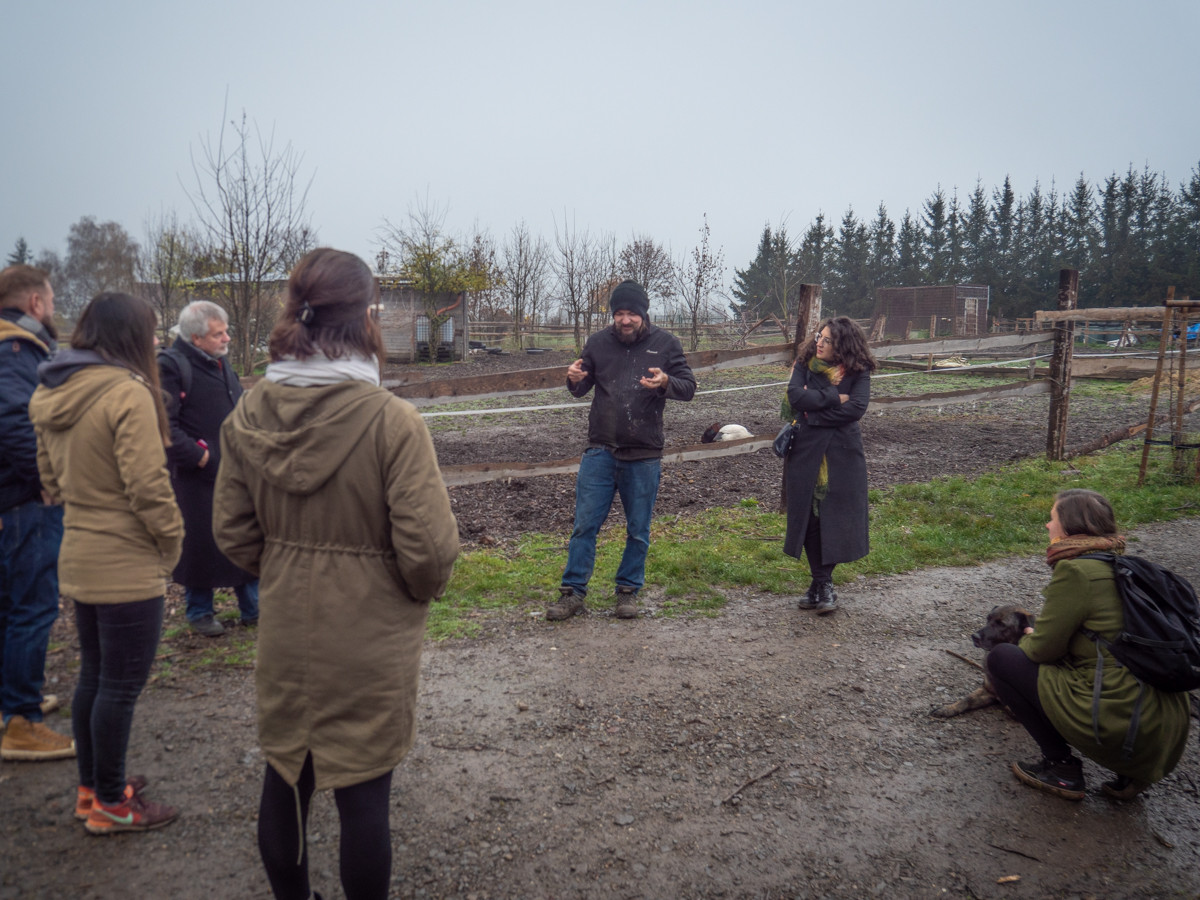 Súčasťou stretnutia bola veľmi inšpiratívna návšteva v Komunitní zahrada Pastvina, ktorá pomáha so začlenením tých, ktorých by podľa ich slov systém „sežral a vyplivl“ (zdravotne a sociálne znevýhodneným ľuďom). Primárne sa venujú pestovaniu zeleniny a chovu zvierat, ktoré využívajú aj pri terapiách. Ponúkajú taktiež možnosť „adopcie“ zvierat, usporadúvajú rôzne workshopy, kurzy či vzdelávania v environmentálnej oblasti. Striktne sa vyhraňujú voči zabíjaniu zvierat, a tak hľadajú spôsoby ako im nájsť využitie. Vypočuli sme si inšpiratívny príbeh Aničky a Marca, ktorý nám opäť pripomenul, že to vôbec nie je ľahké, ale stojí to za to. Anička a Marco z Pastviny robia veľké dobro a my im držíme palce.