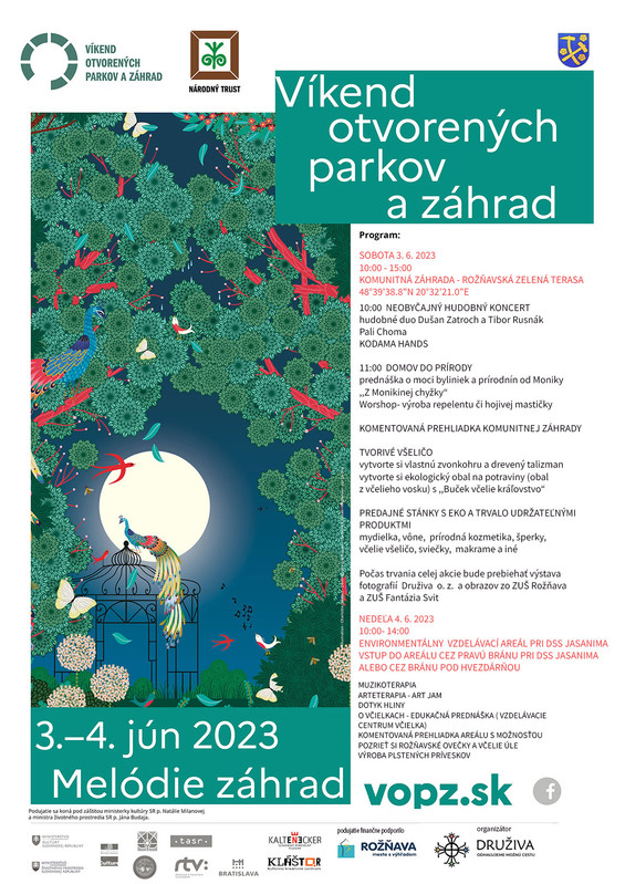 Tento rok sa koná jubilejný už XV. ročník podujatia Víkend otvorených parkov a záhrad, ktorého cieľom je priblížiť krásu ako aj šíriť myšlienky aktívnej ochrany a kvalitnej údržby našich parkov a záhrad! V dňoch 2.-4.júna 2023 budete mať jedinečnú príležitosť navštíviť viac ako 110 verejných i súkromných parkov a záhrad z územia celého Slovenska.